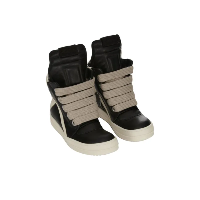 RICK OWENS совместный бренд RO Concordians Jumbolace Geobasket Высокие кроссовки для скейтбординга Женские Черный Белый