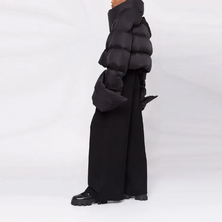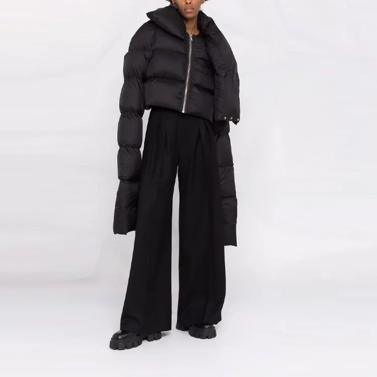 RICK OWENS совместный бренд RO FW21 Однотонный Воротник-стойка Свободный крой Короткий Пуховик Женский Черный