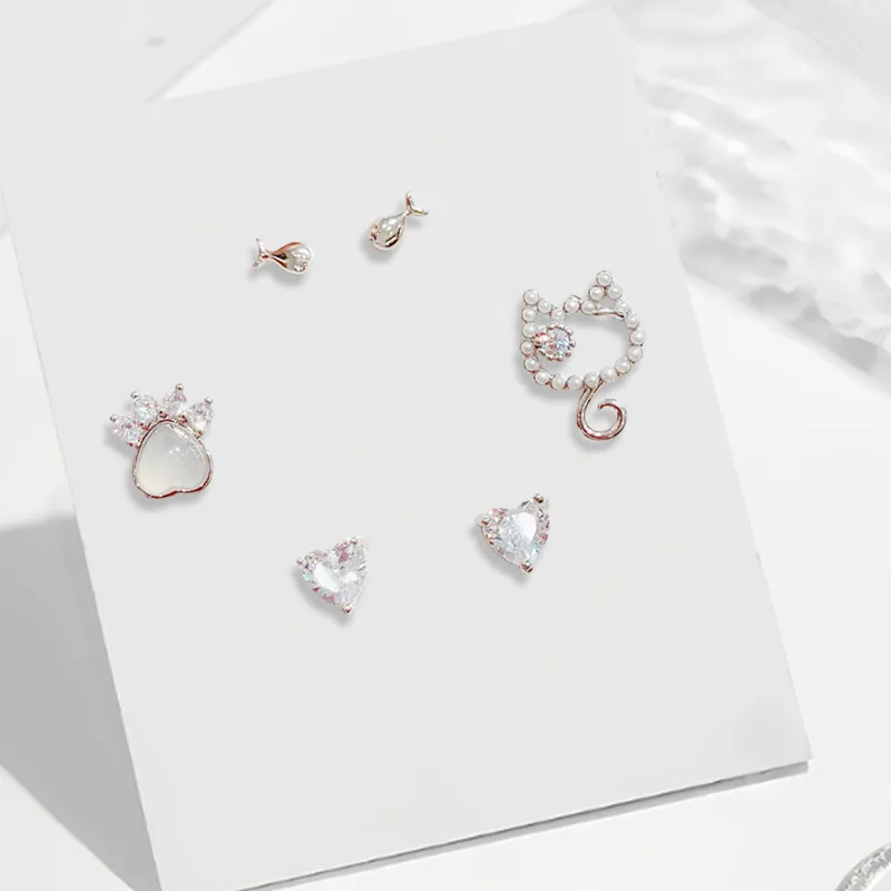 Серьги-гвоздики "Любящий Котенок", комплект одежды [Золото]