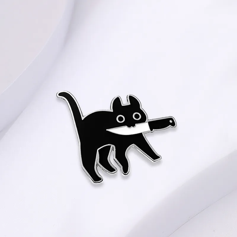 Брошь в виде кошки с ножом
