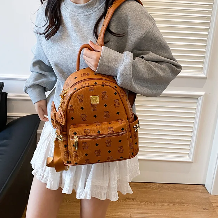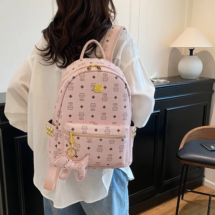 RIVMIND ПУ (полиуретан) Рюкзак Стандартный Женский Бежевый Желтый Экрю Желтый Светло-розовый Темно-розовый