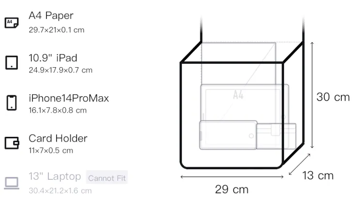 Длина (размер в длину): 38/29 см, Ширина корпуса: 13 см, Длина корпуса: 30 см