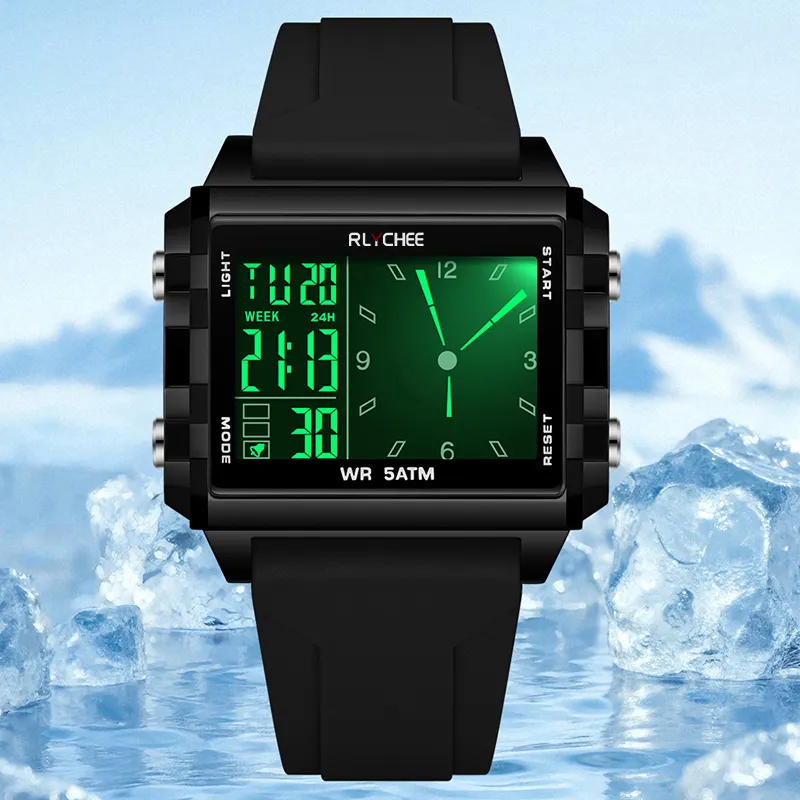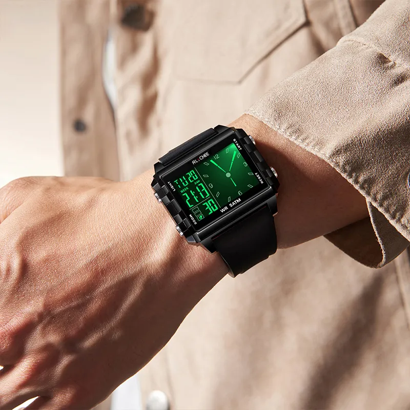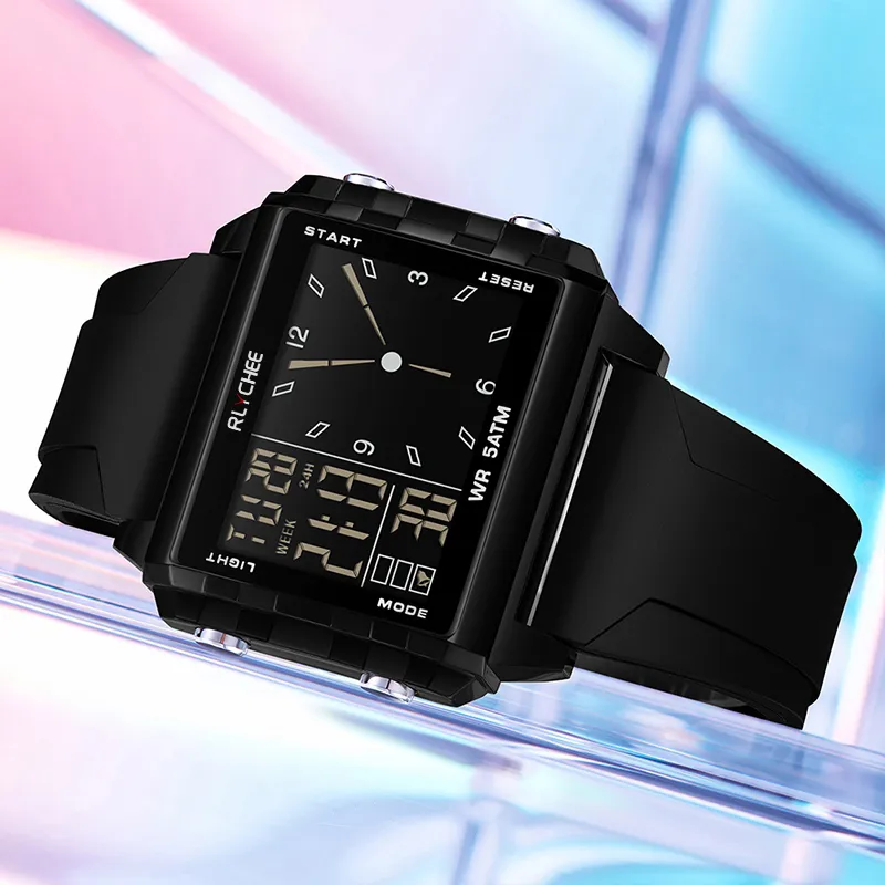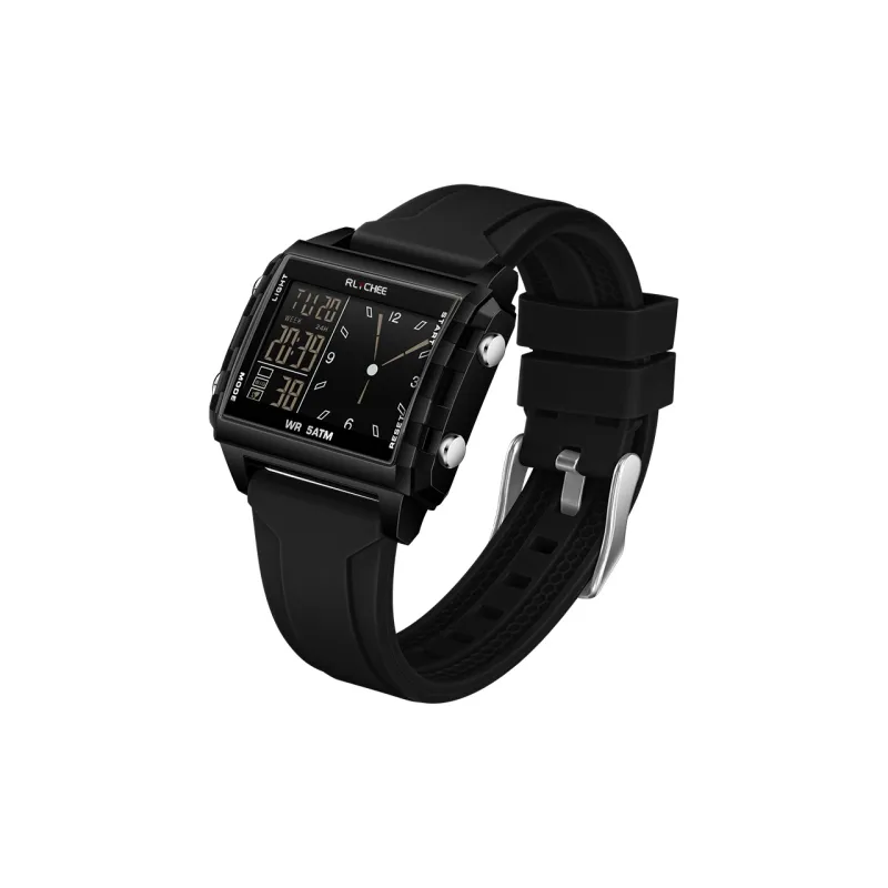Rlychee Электронные Механические Часы Силиконовый Ремешок Унисекс Черный Циферблат