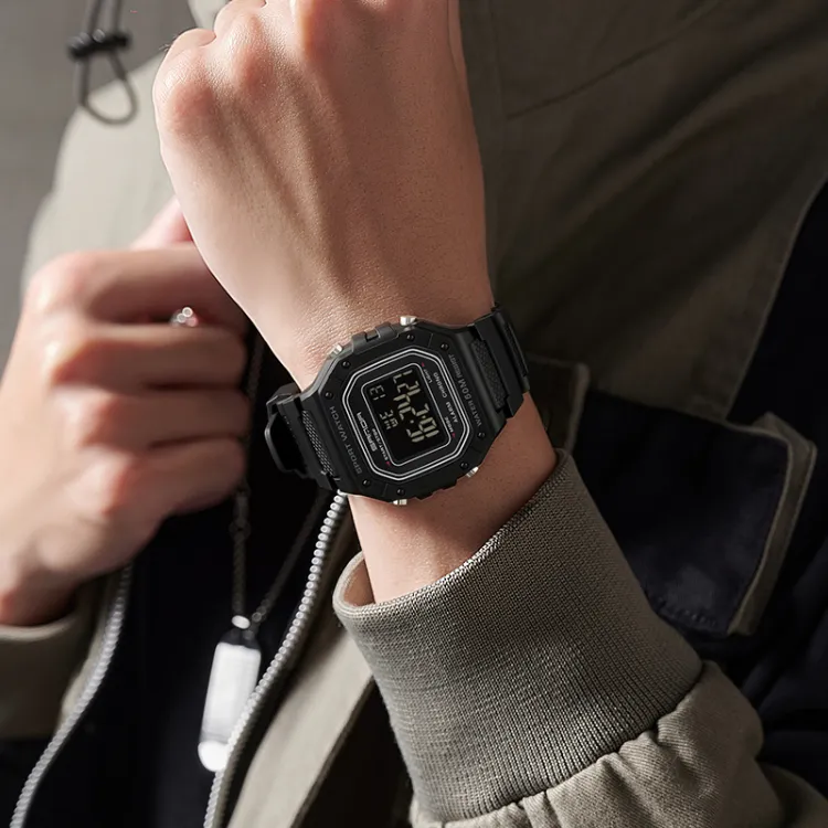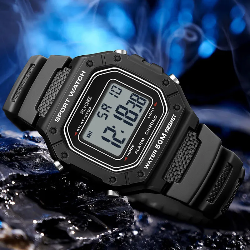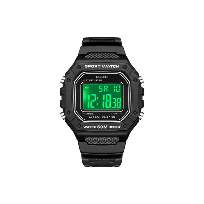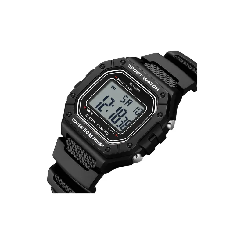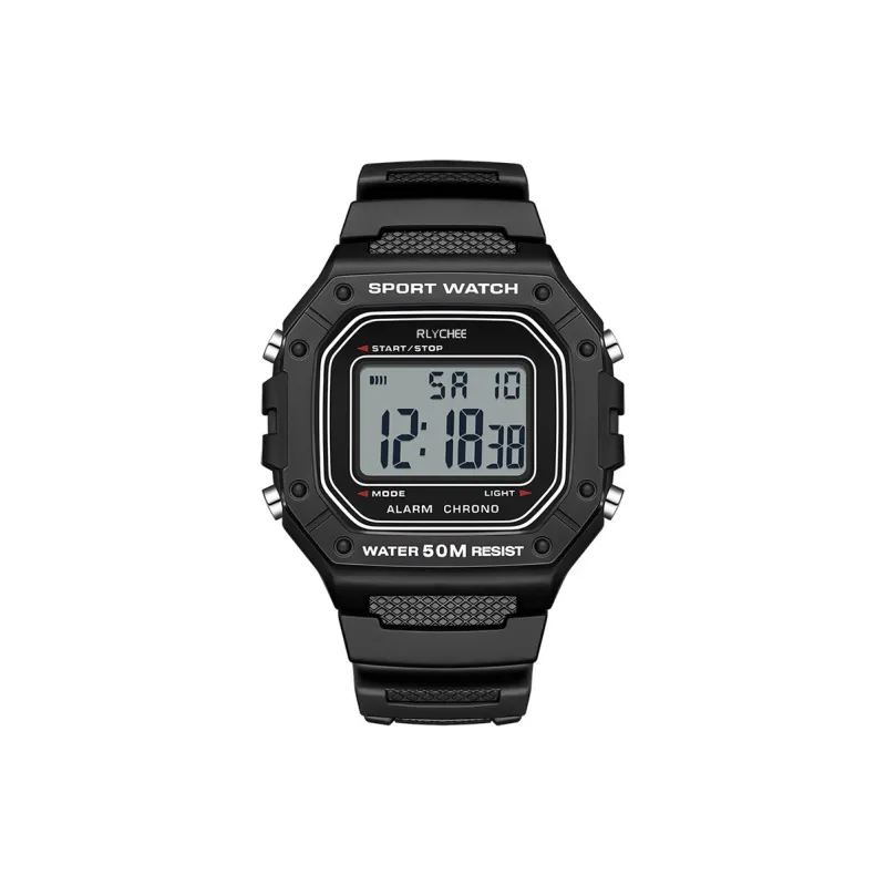 Rlychee Электронный механизм TPU ремешок Часы Унисекс Черный циферблат