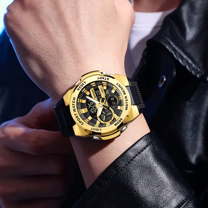 Rlychee Электронный + Кварцевый механизм TPU Ремешок Часы Мужские Кварцевые Часы Скелетный Циферблат