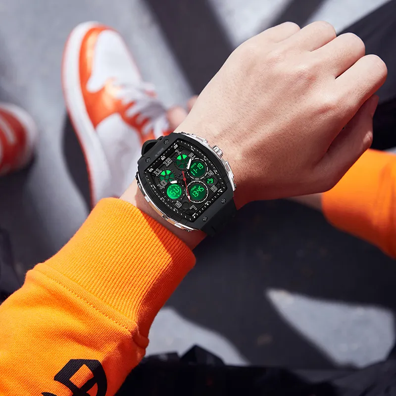 Rlychee Trendy Fashion Multifunction Светящийся в темноте Водонепроницаемый Электронный + Кварцевый механизм