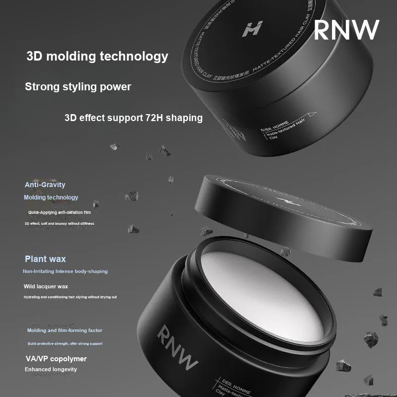RNW Мужской Матовый Волосы Глина Волосы Парафин Для Формирования И Натуральный Освежающий Объем Стайлинг Длинный Долговечный 50г