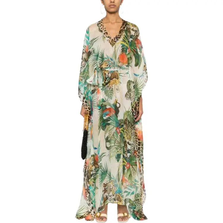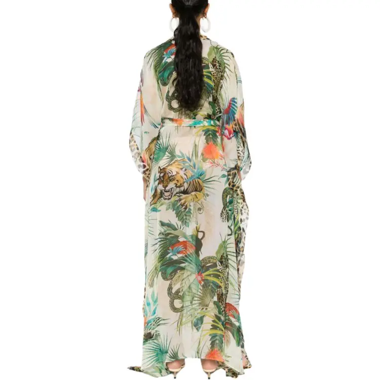 Roberto Cavalli SS24 Длинное платье с длинными рукавами женское многоцветное