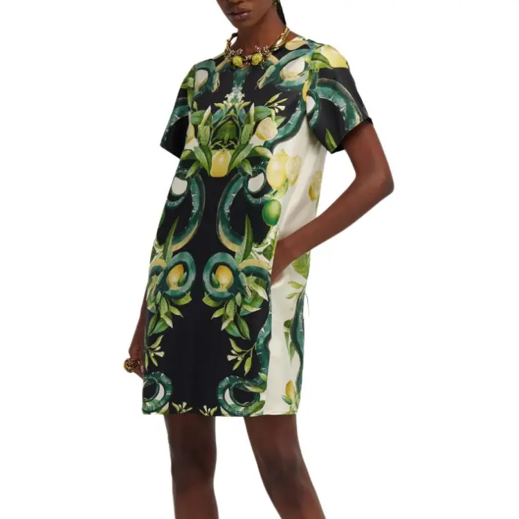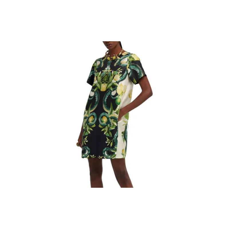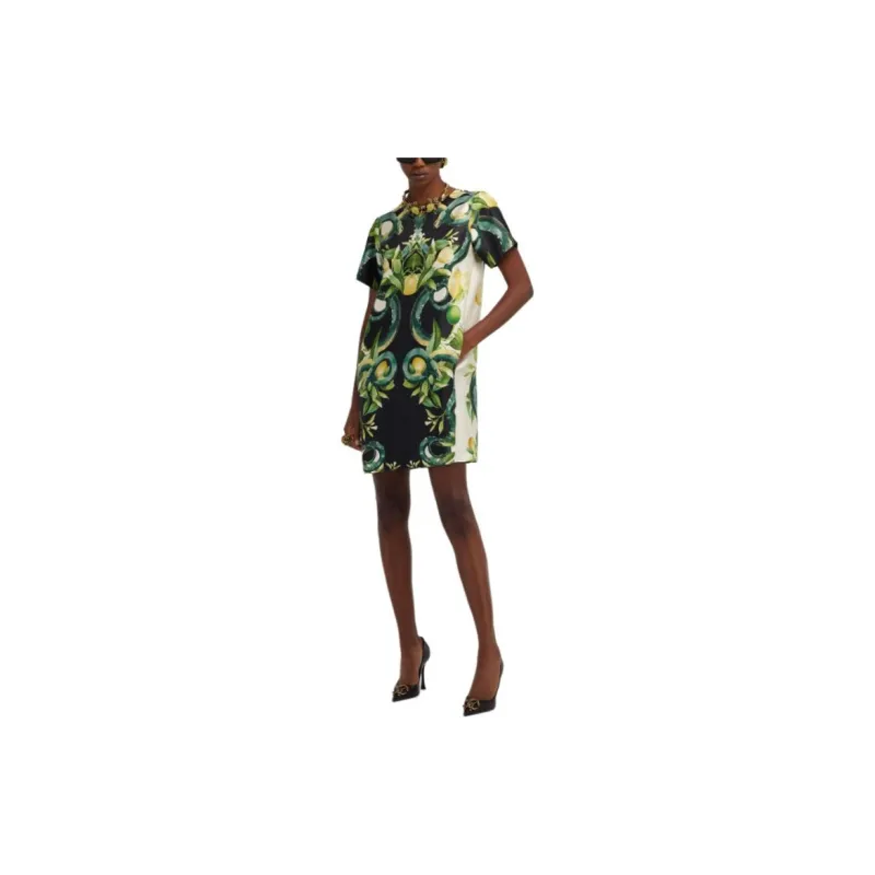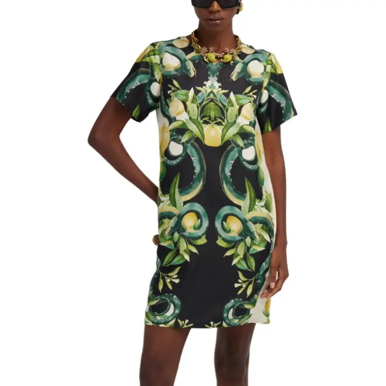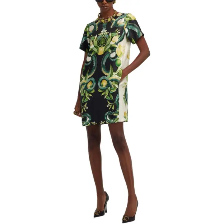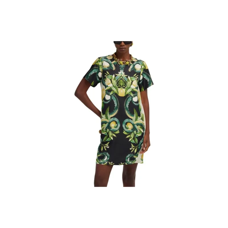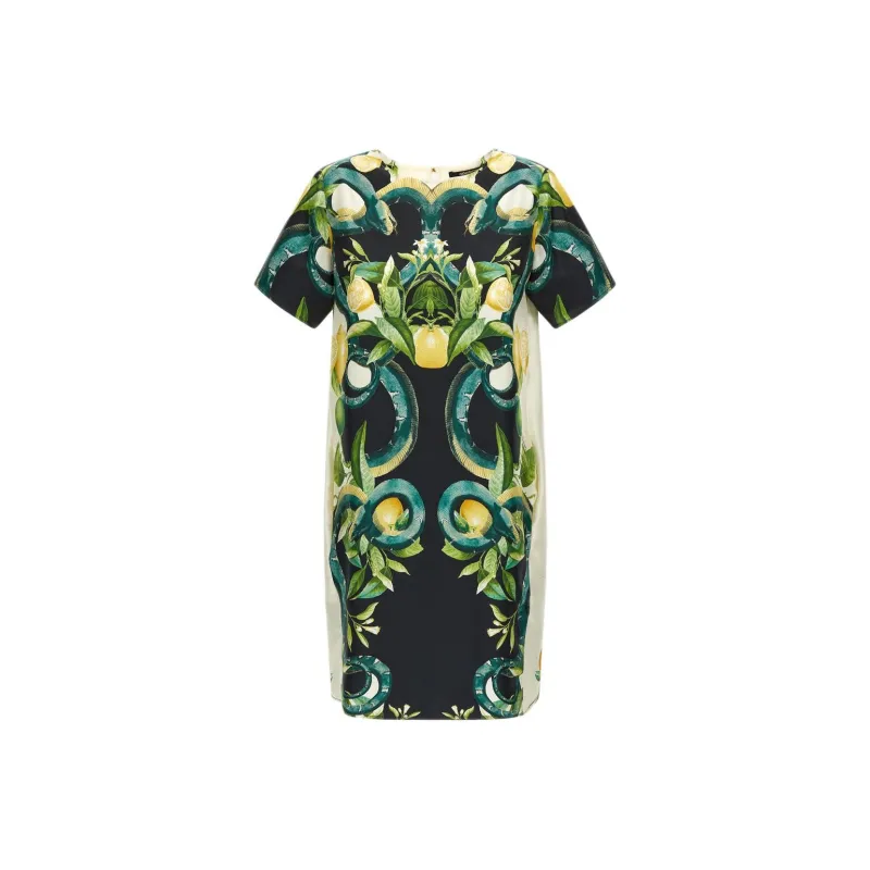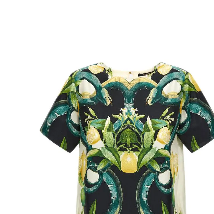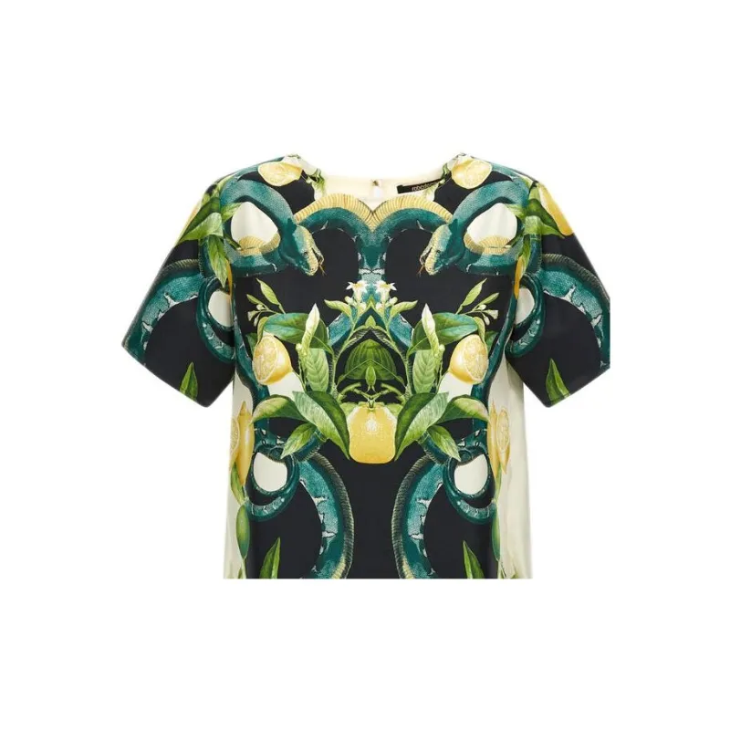 Roberto Cavalli SS24 Короткое платье с короткими рукавами женское зеленое