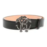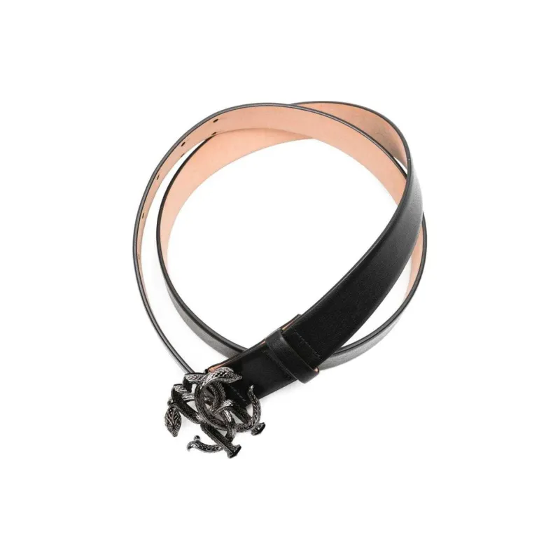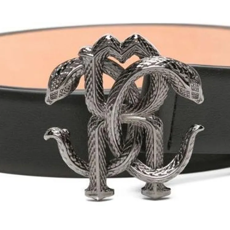 Roberto Cavalli RC Монограмма Узор Украшение Телячья кожа Кожаные ремни Мужской Черный Ширина 3 см