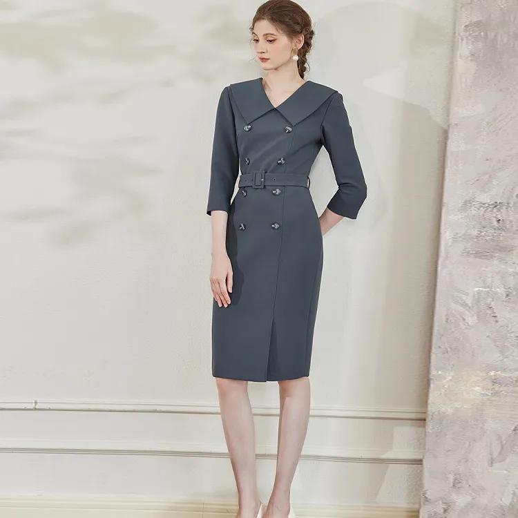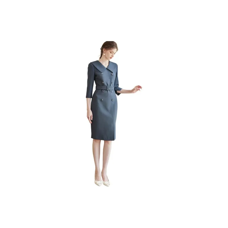 ROEYSHOUSE Длинное платье с длинными рукавами женское темно-серое