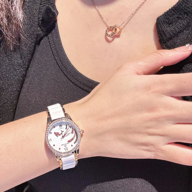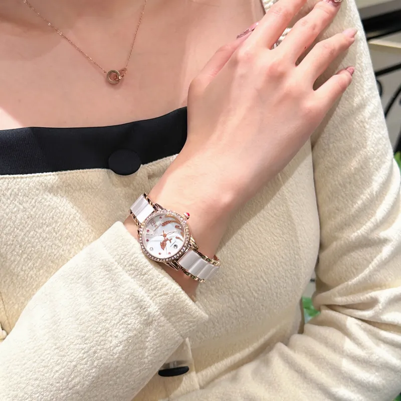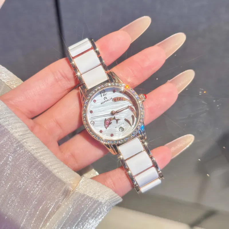 ROFERLAS Ballet Dancer Кварц Автоматический Механический Механизм Керамика Ремешок Часы Женские Часы