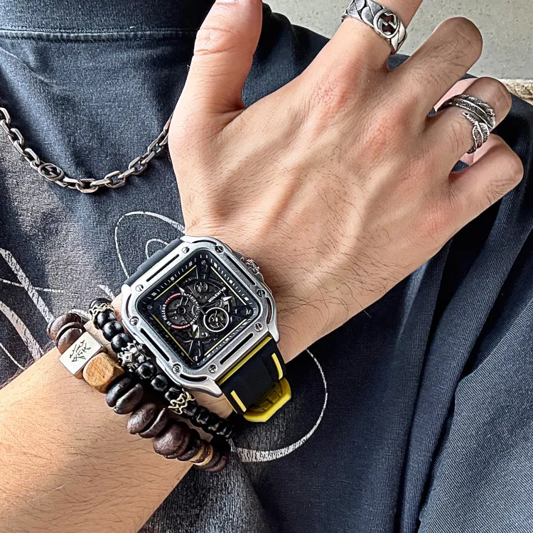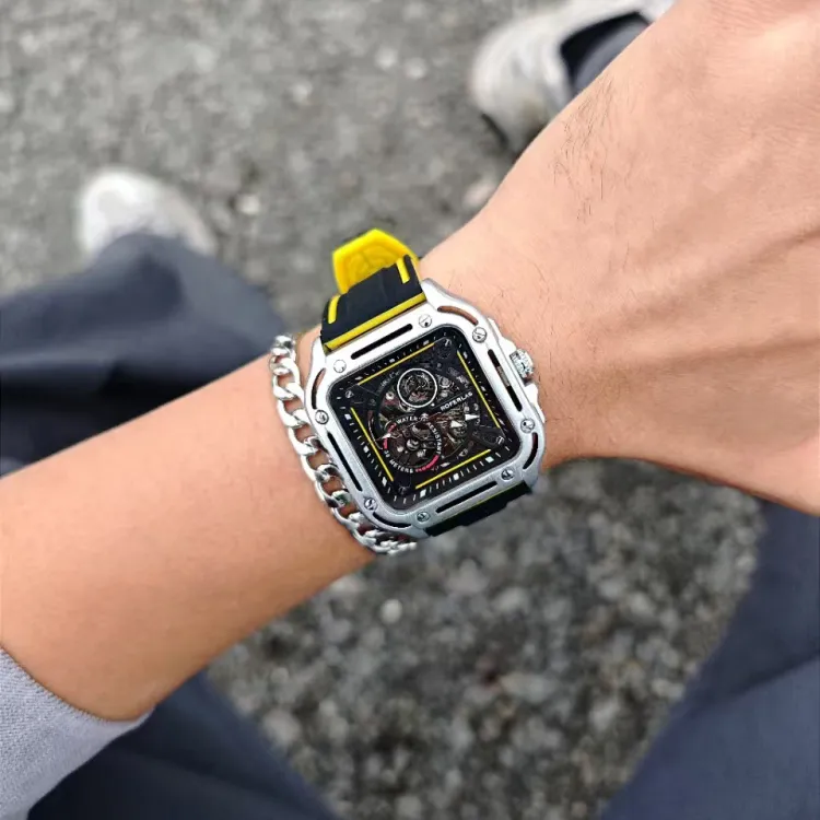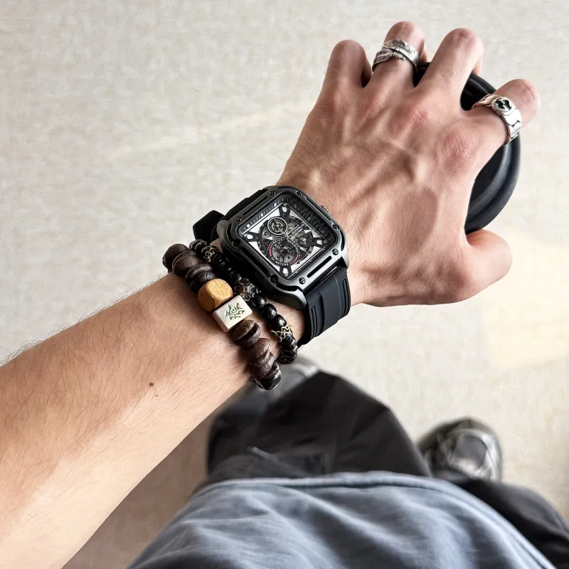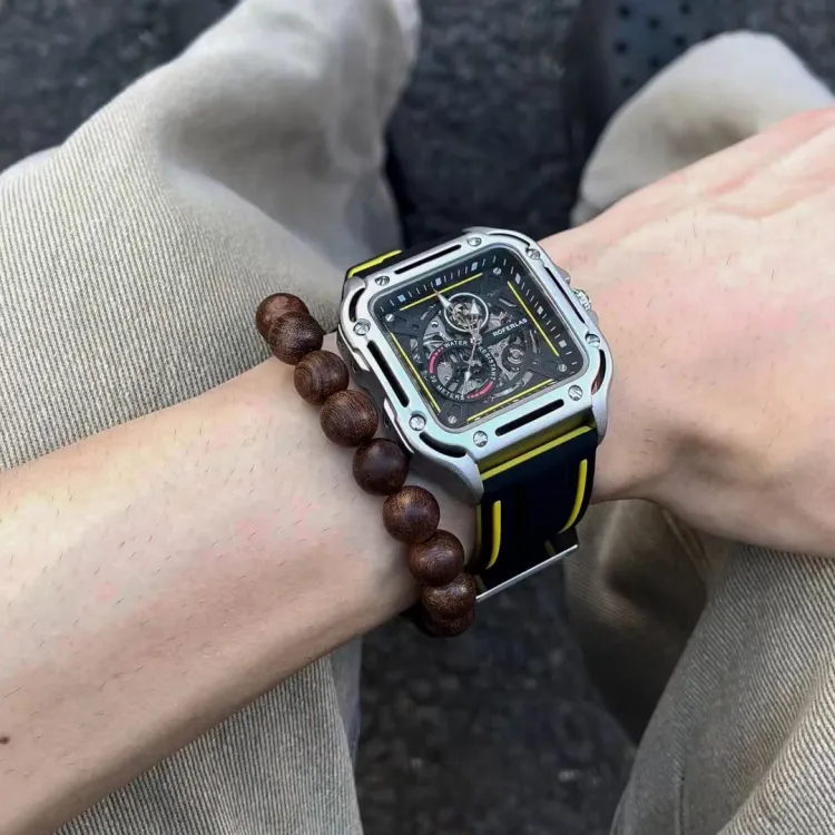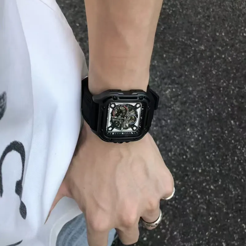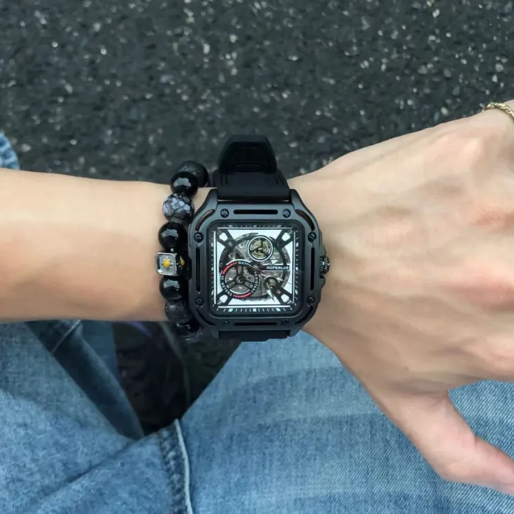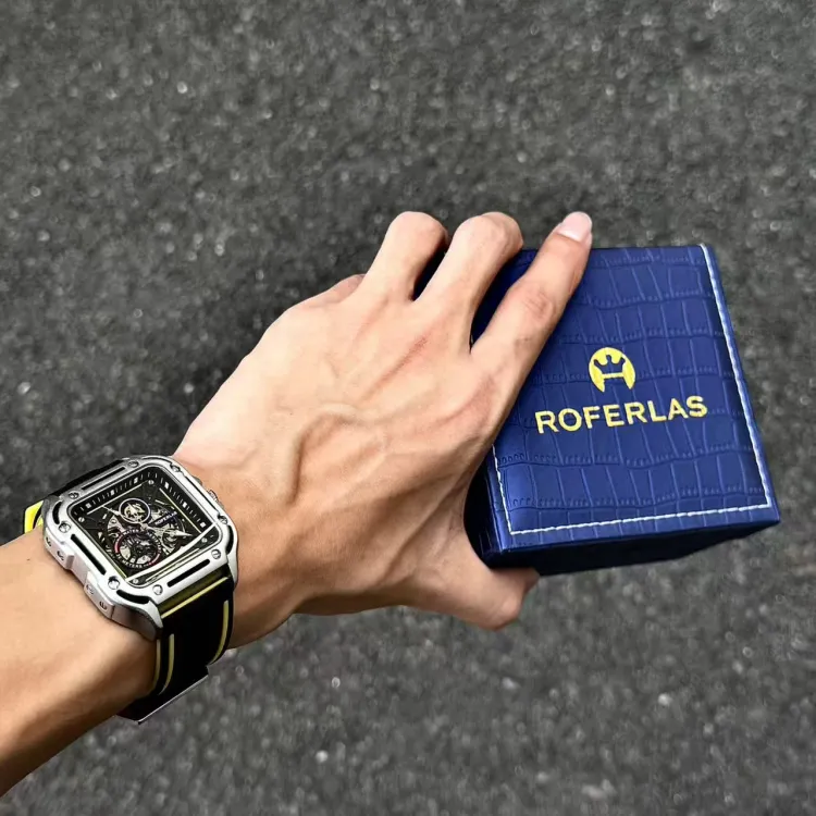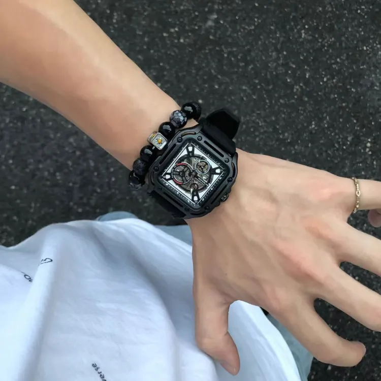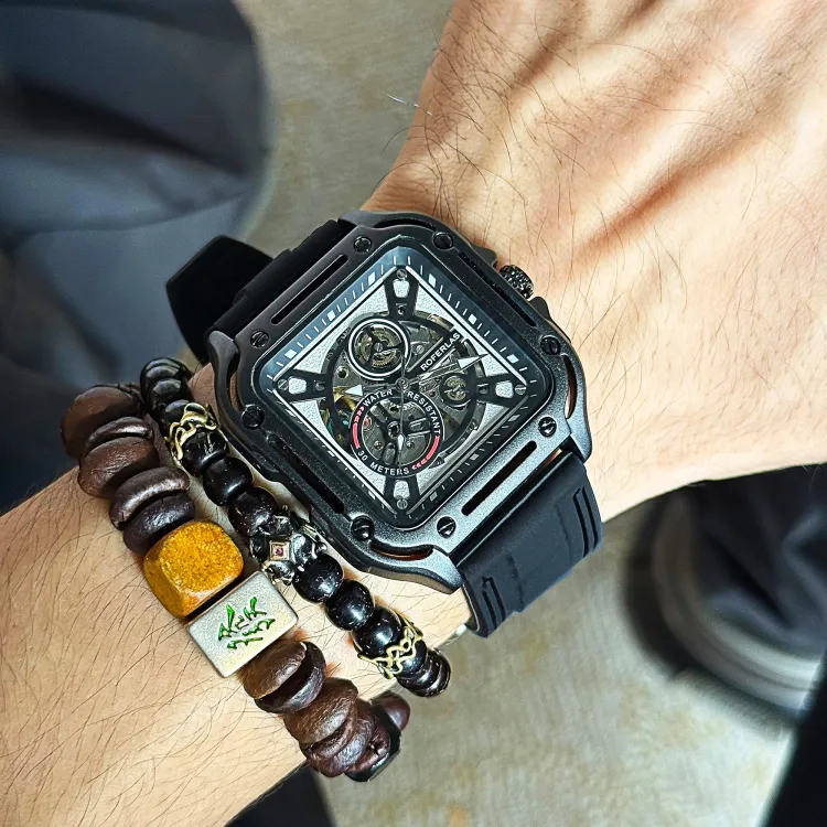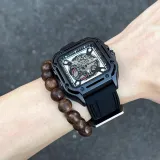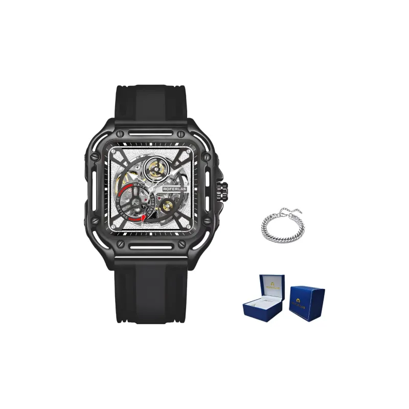 ROFERLAS Механическое механическое часы с резиновым ремешком Мужские часы с циферблатом Skeleton