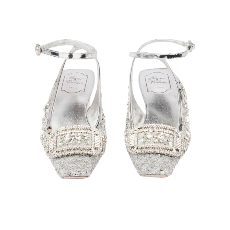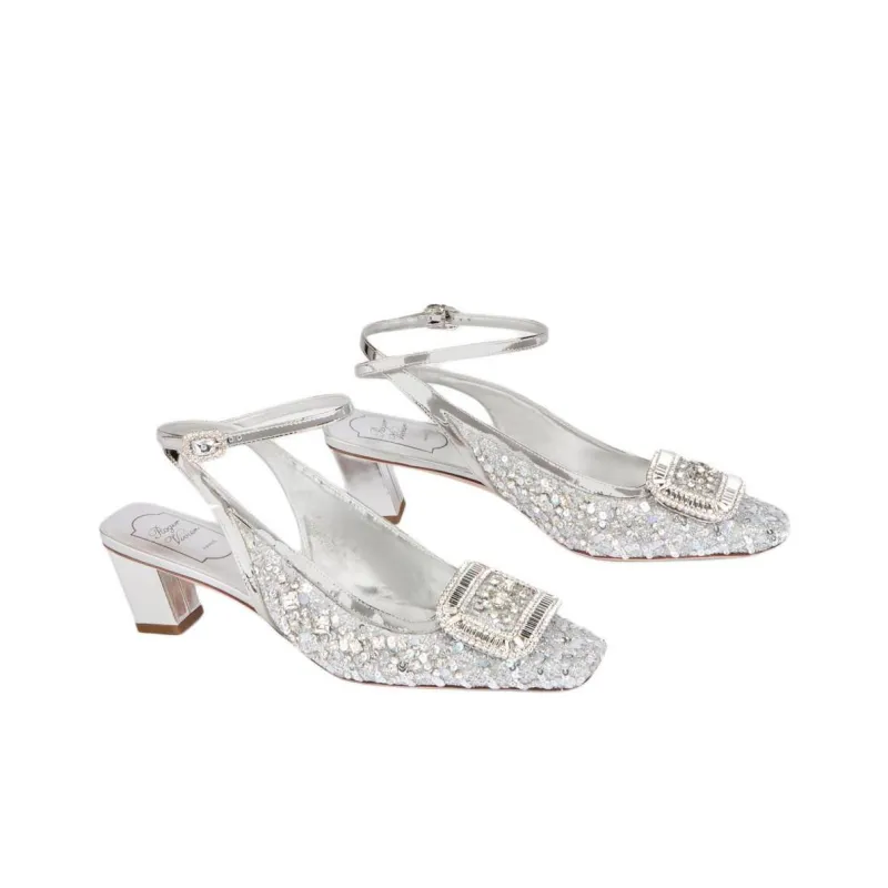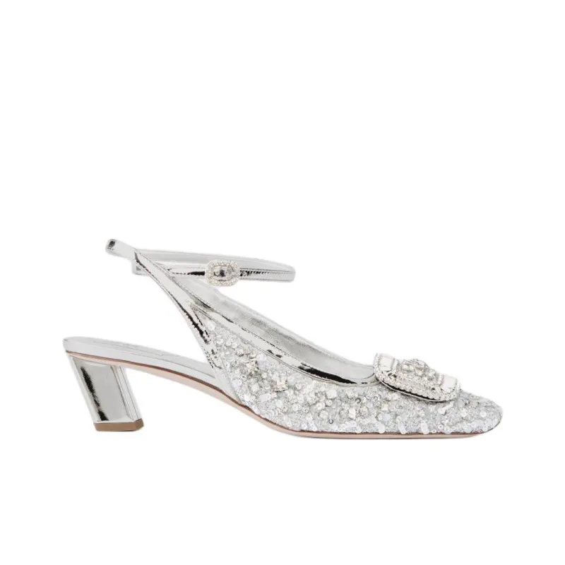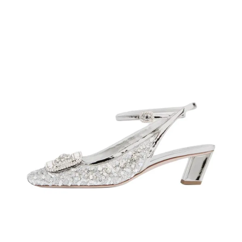 Roger Vivier Belle Vivier Квадратный каблук Высокие каблуки 4,5 см Женские Серебристые