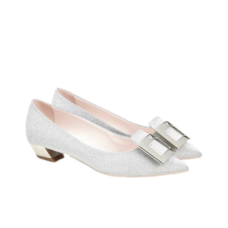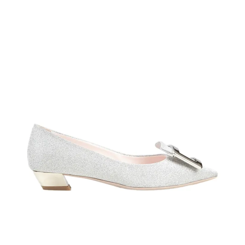 Roger Vivier Gommettine Квадратный каблук Высокие каблуки Женские Серебристый
