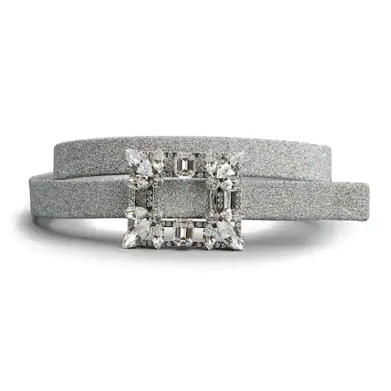 Roger Vivier Блестка Украшение Пряжка-пластина Кожаные ремни Women's Silver Ширина 1,5CM
