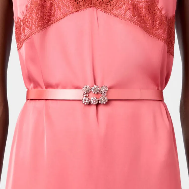 Roger Vivier Шелк Смесь Сатин Кожаные ремни Женские Розовый Ширина 1,5CM