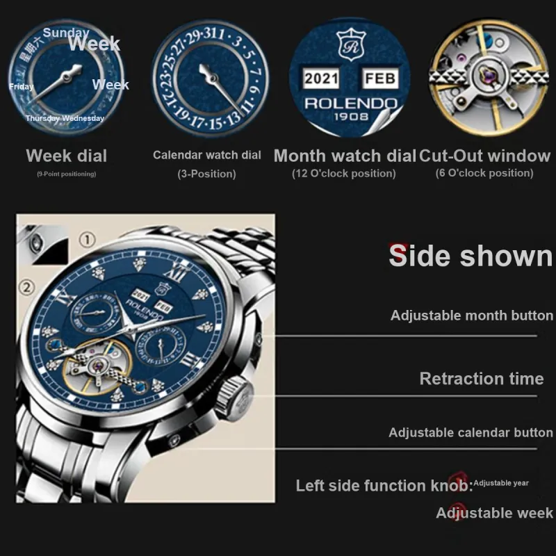 ROLENDO R Автоматический механический механизм Мужские часы 43mm*43mm*14mm Синий