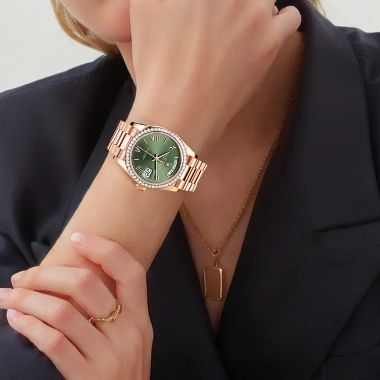 ROLEX Week Тип Календарь Автоматический Механический Механизм Женские Часы 36 мм Зеленый Циферблат 18K Вечный Розовое Золото Чехлы для Часов