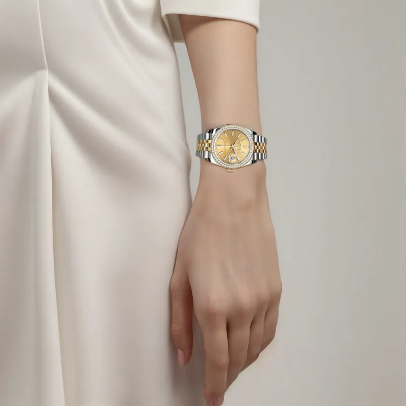 ROLEX Oyster Perpetual Datejust Коллекция Автоматический Механический Механизм Женские Часы 36 мм Золотистый Циферблат