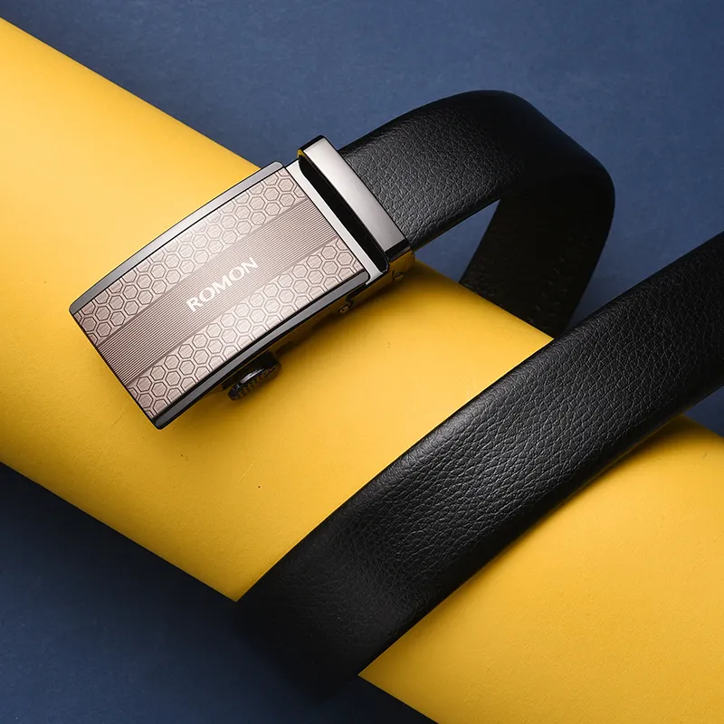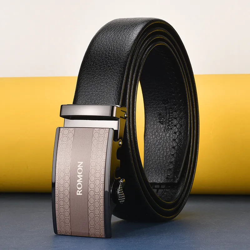 Romon Автоматическая застежка бизнес натуральная кожа брюки ремень роскошь модный ремень из коровьей кожи мужской 3,5 см