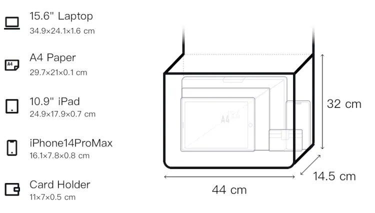 Д44*Ш14,5*В32см