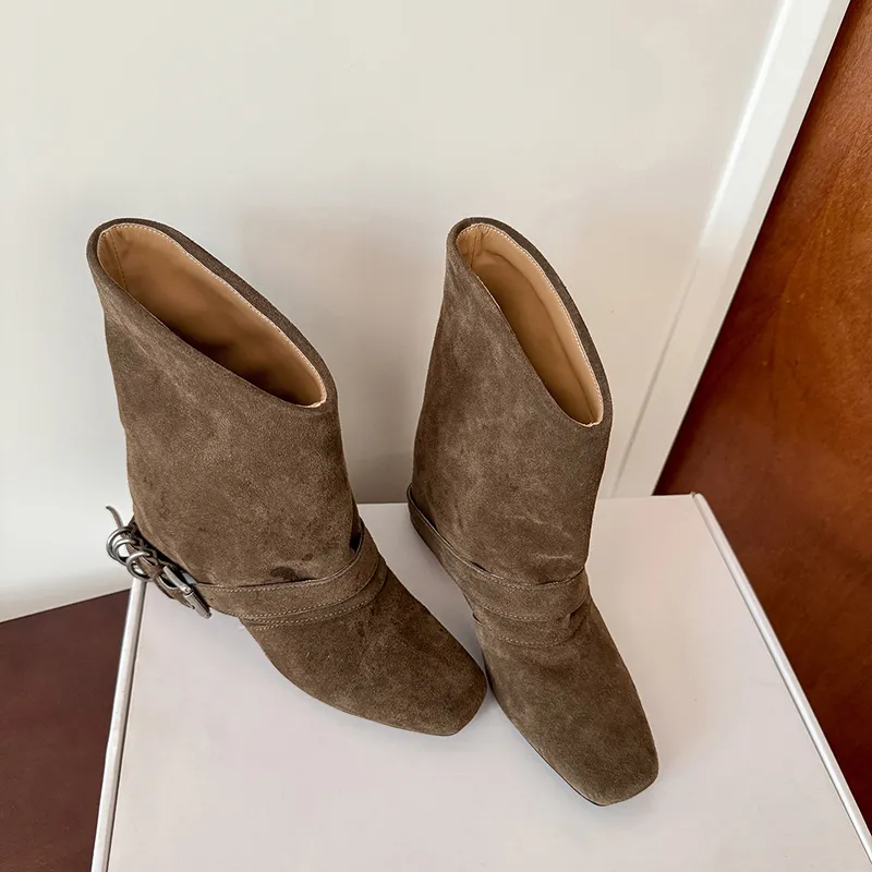 ROROWU Скрытый клин утягивающий длинный расклешенный ботильоны для женщин