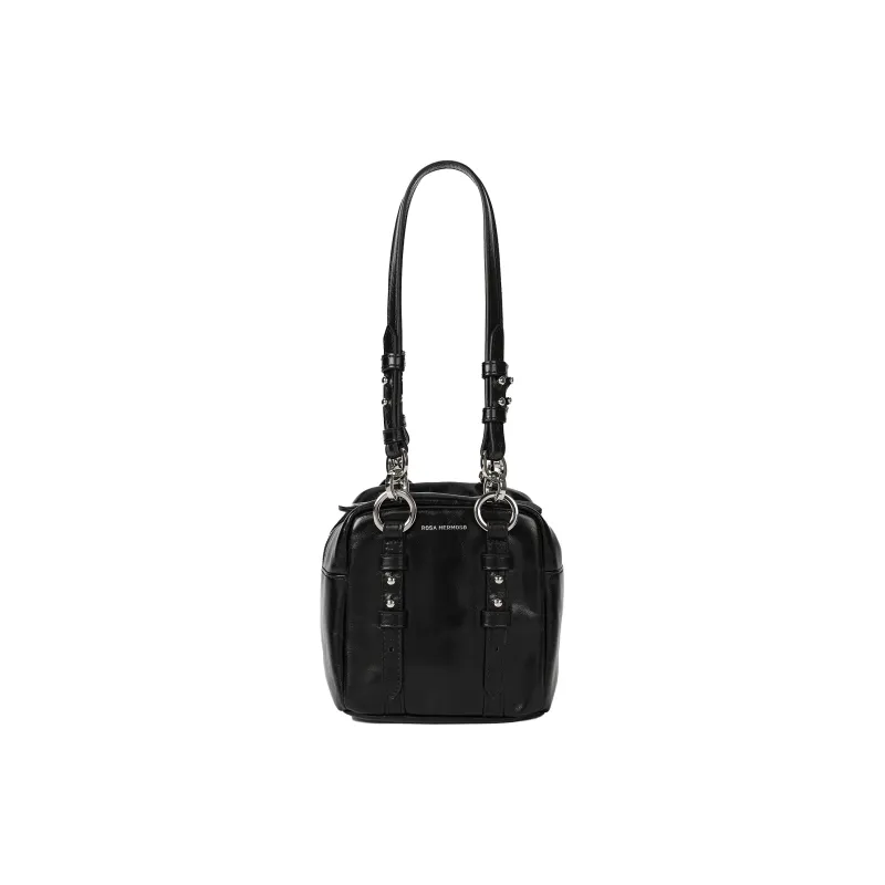 ROSA HERMOSO Fine Крупнозернистая текстура Коровья кожа Тост Квадратная Сумка Одно Плечо Сумка Маленькая Унисекс Черная