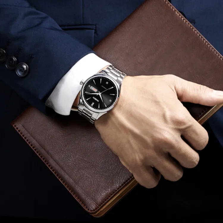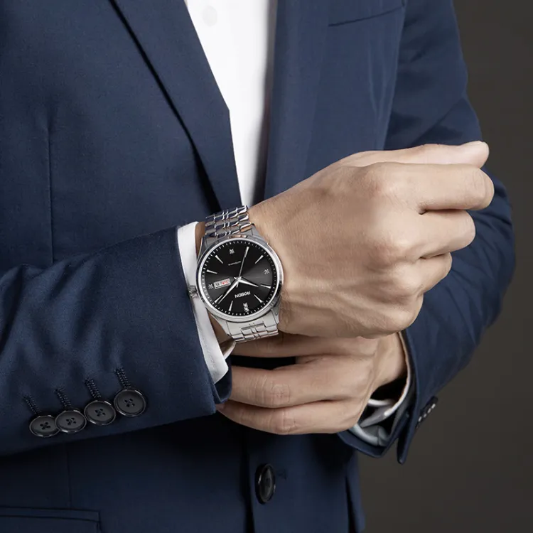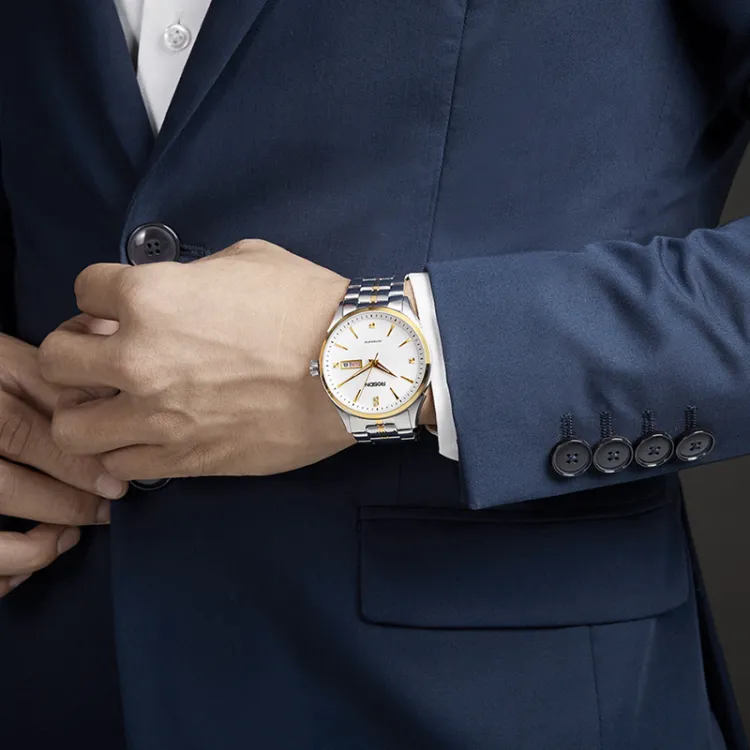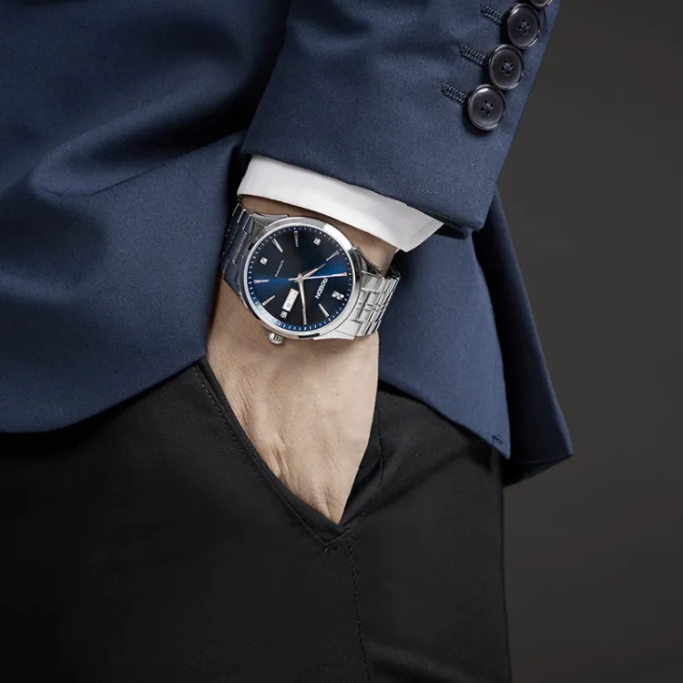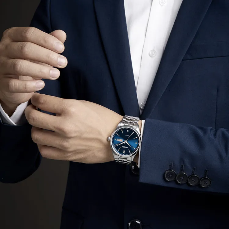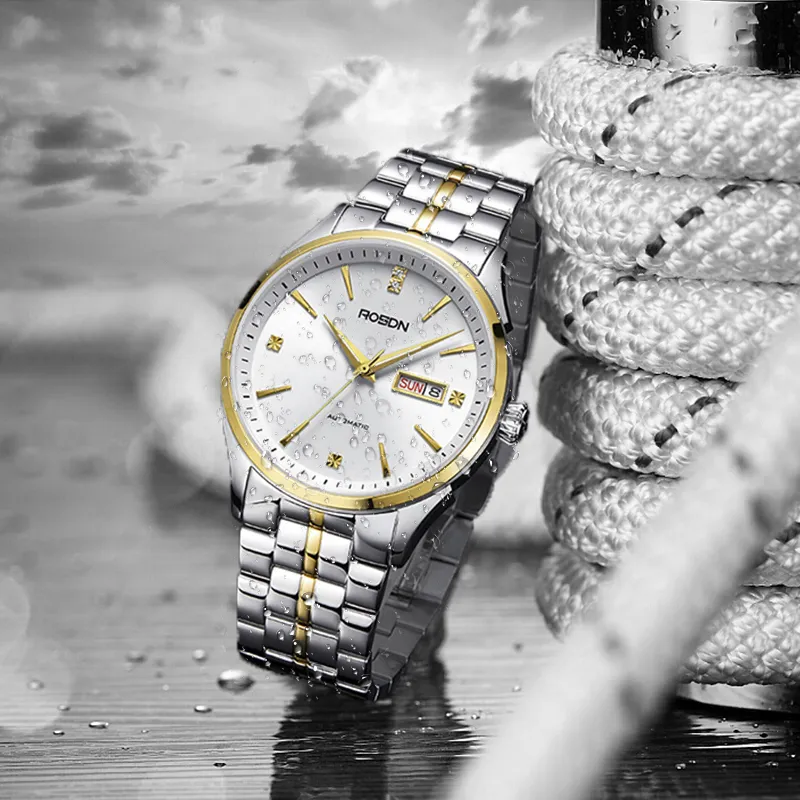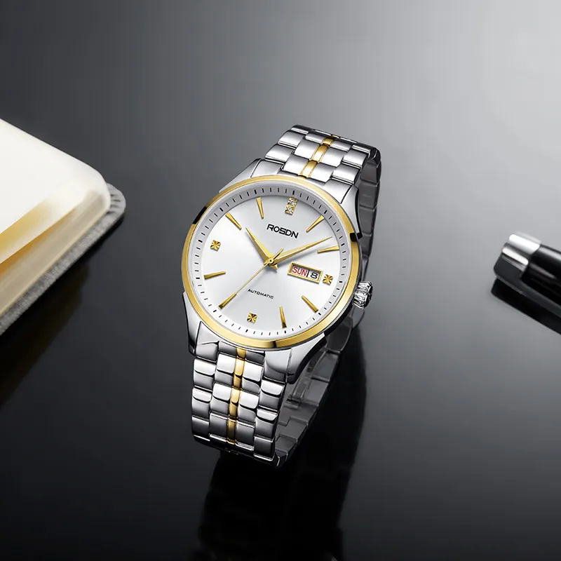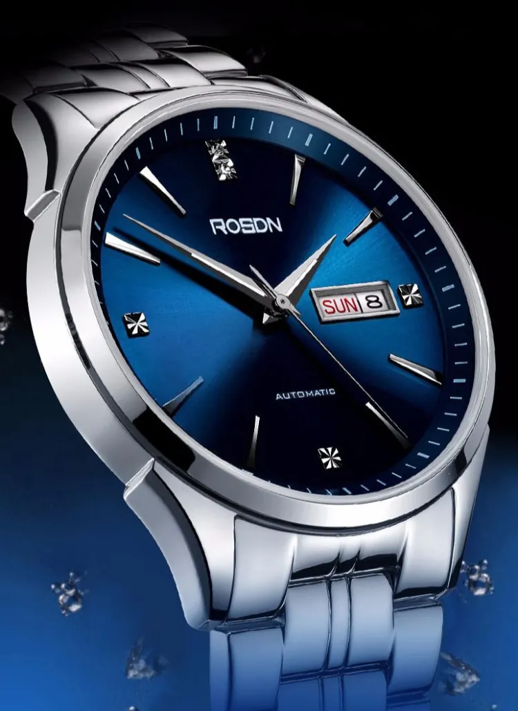ROSDN Trendy Fashion Collection Автоматический Механический Механизм Нержавеющая Сталь Ремешок Часы Мужские Часы Синий Циферблат