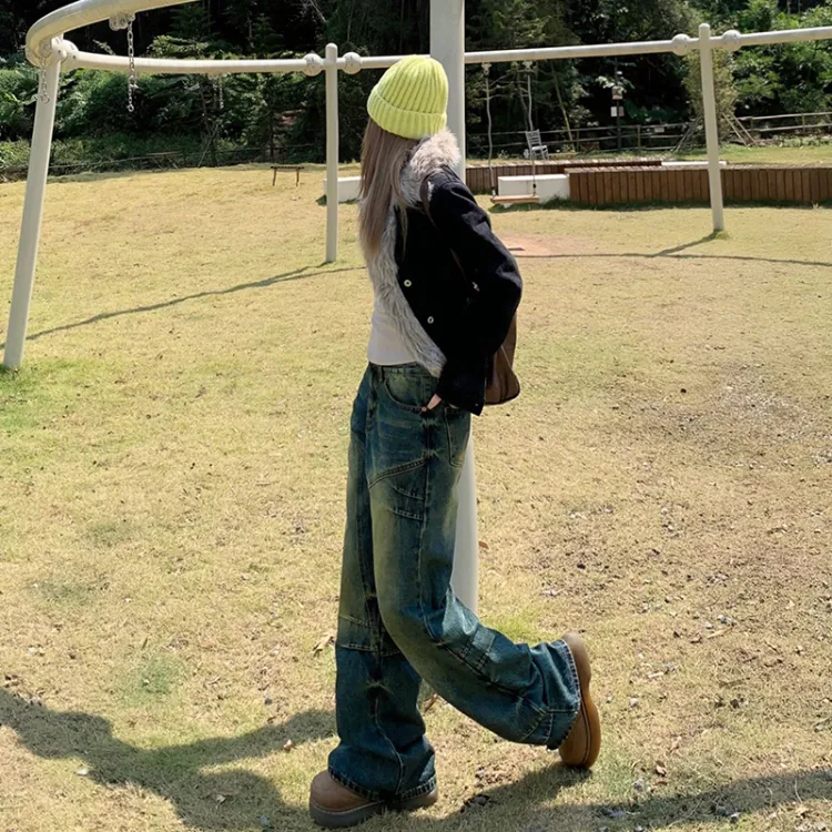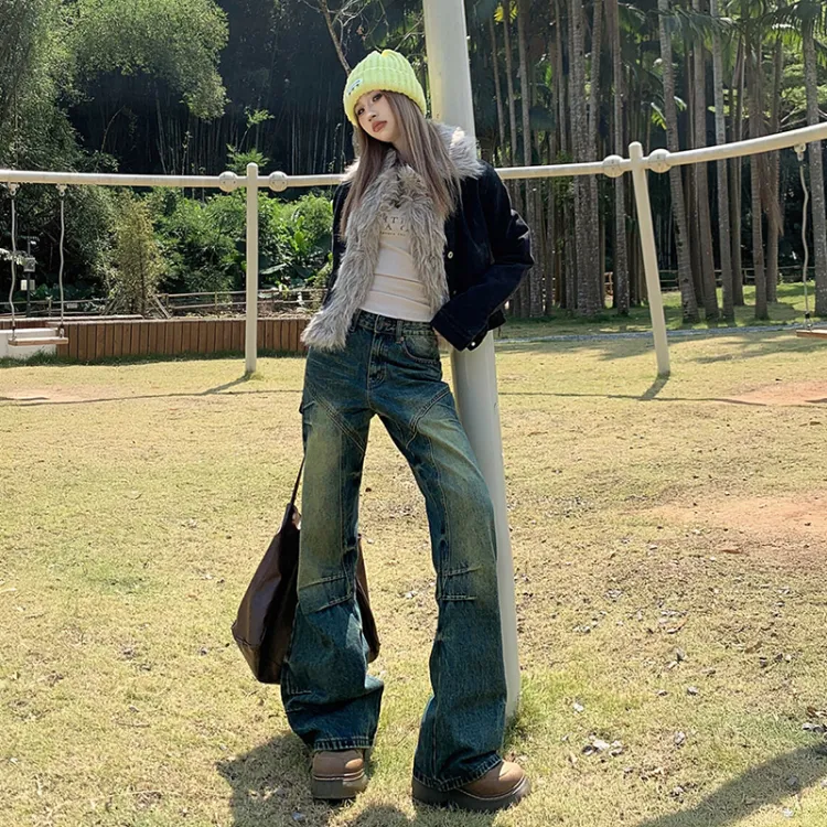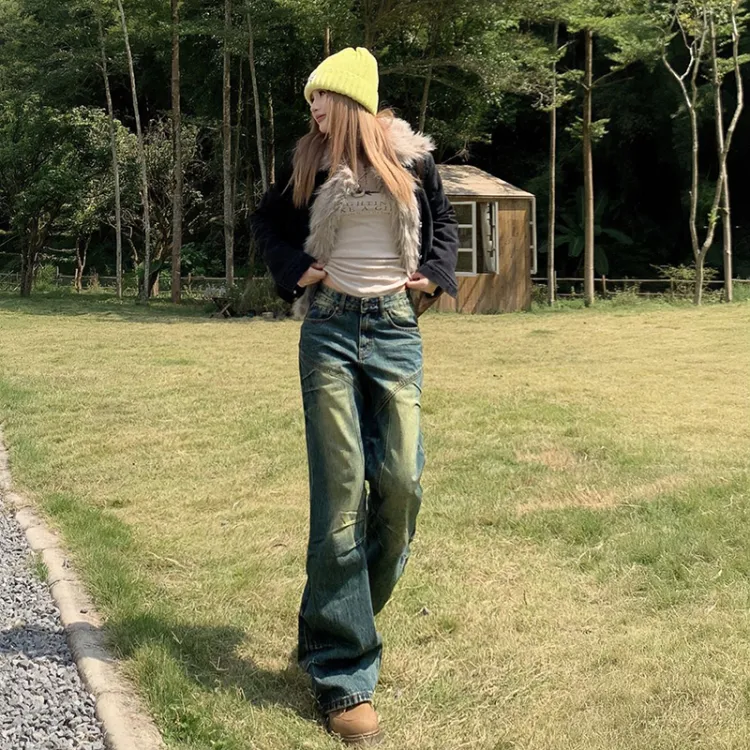 Розовый джинсы женские винтажный синий