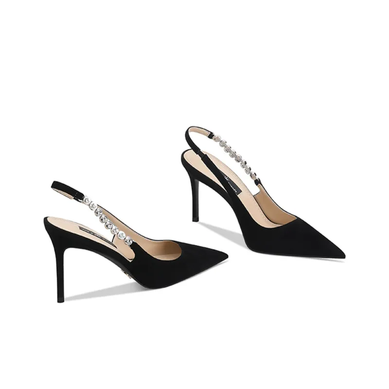 [Овца Кожа][Высота каблука 8,5 см, Черный]