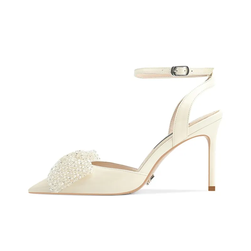 [Коровья кожа][Высокий каблук 8,5 см, цвет молочный белый]
