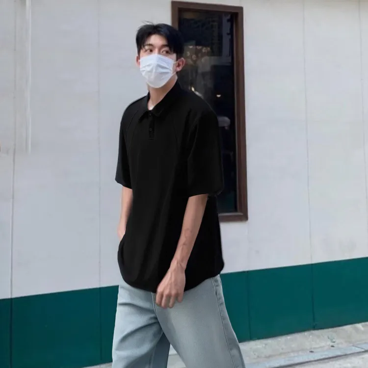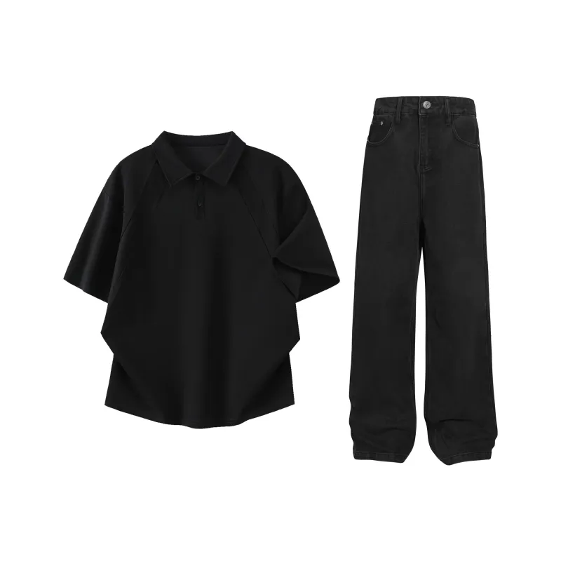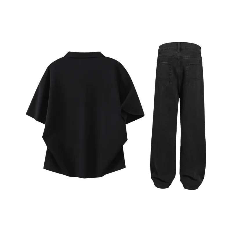 Чёрный топ + синие штаны
