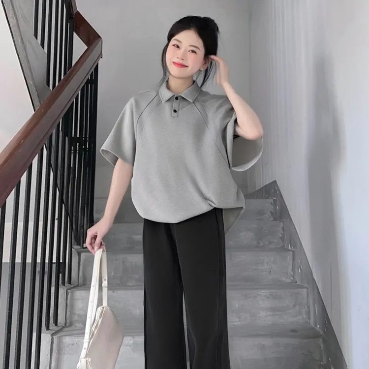 Светло-серый топ + серые штаны