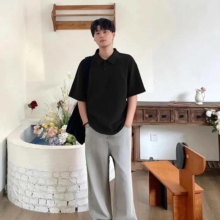 Чёрный топ + серые штаны