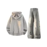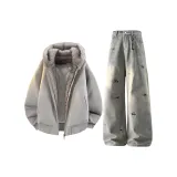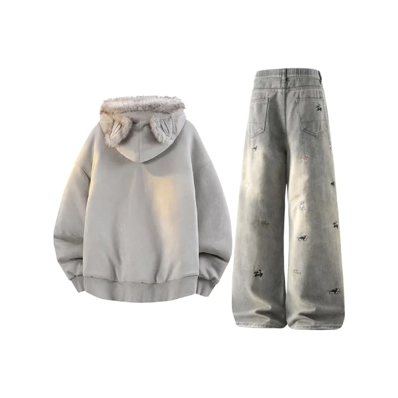 Комплект:Белое серое пальто + светло-синие штаны