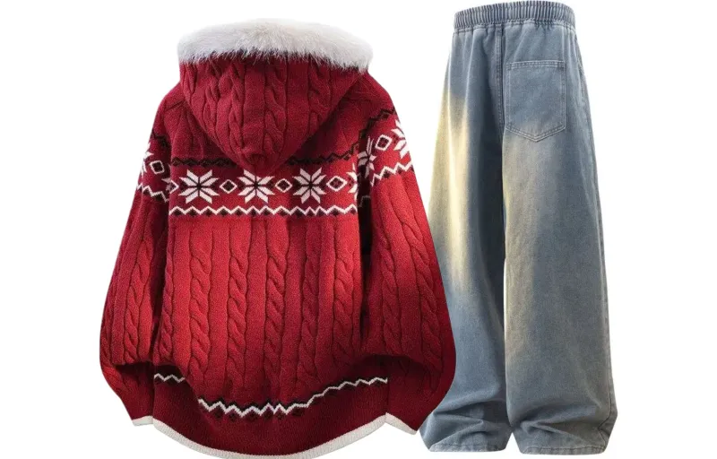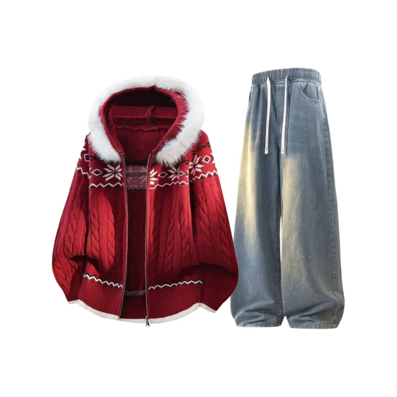 Комплект:Красный топ + винтажные синие штаны
