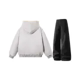 Комплект:Светло-серый топ + черные штаны с флисовой подкладкой