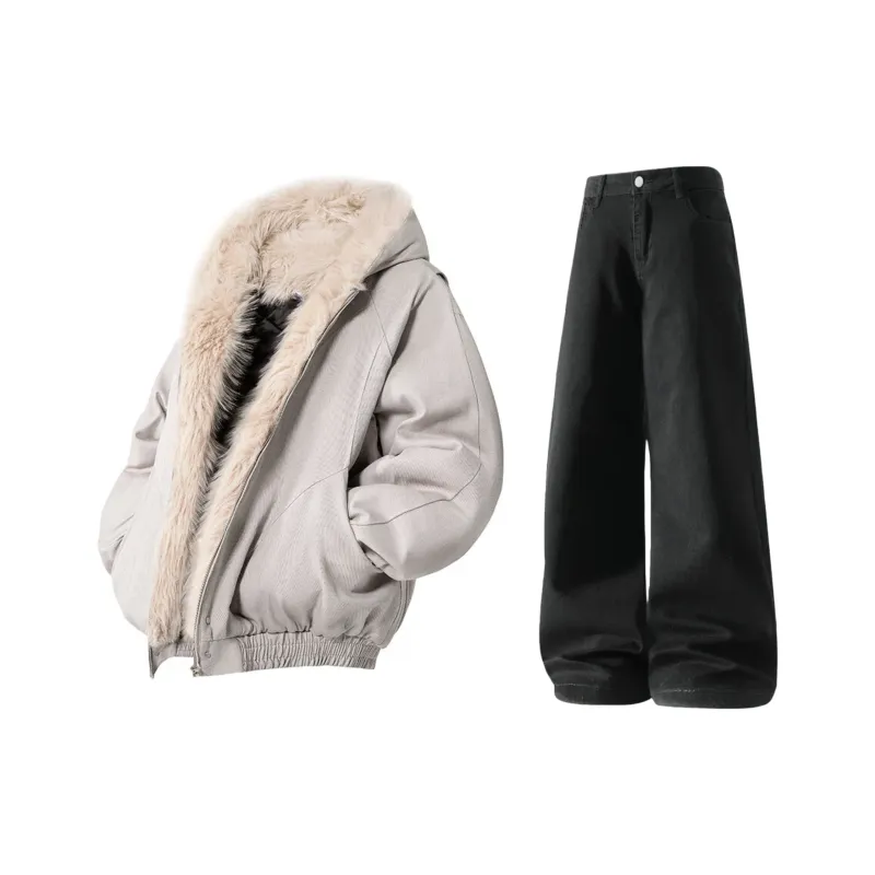 Светло-серый топ + черные штаны с флисовой подкладкой