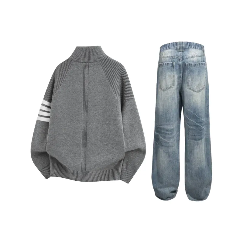Комплект:Серый топ + синие штаны