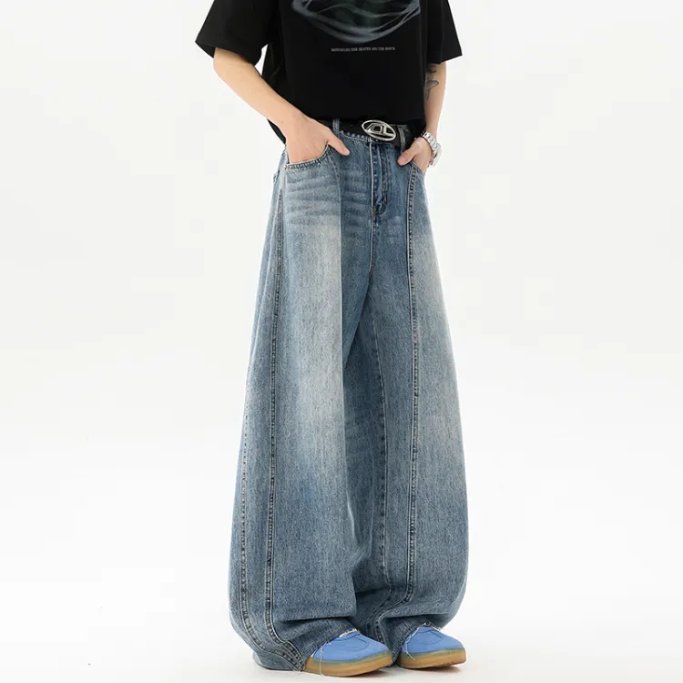 Серый топ + синие штаны