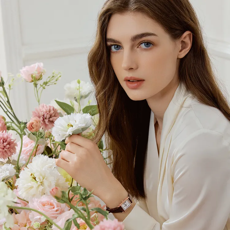Rosemont Nostalgia Collection Кварцевый механизм Женские часы Белый циферблат Корпус из нержавеющей стали Ремешок из натуральной кожи
