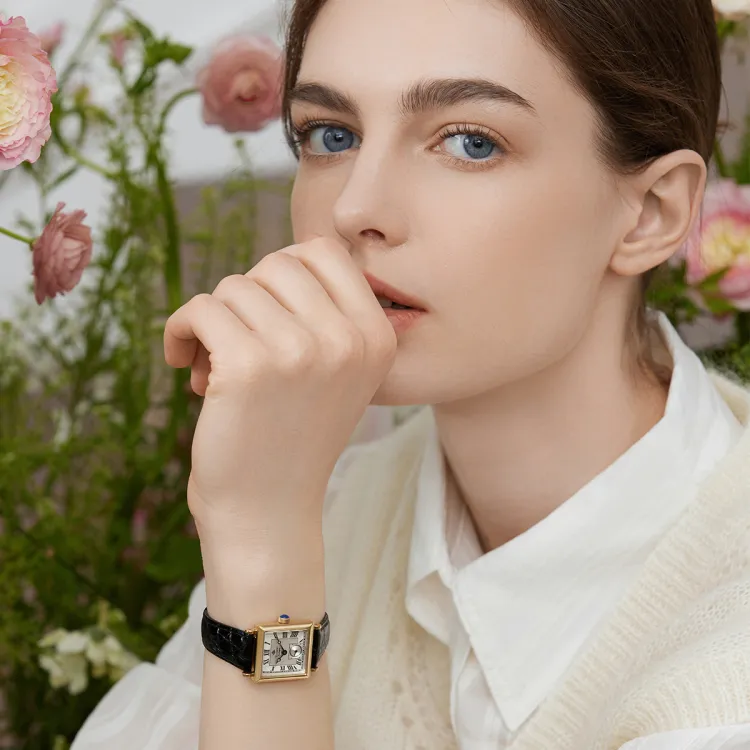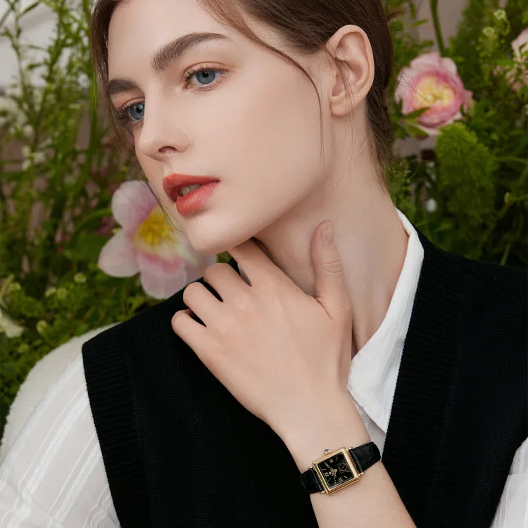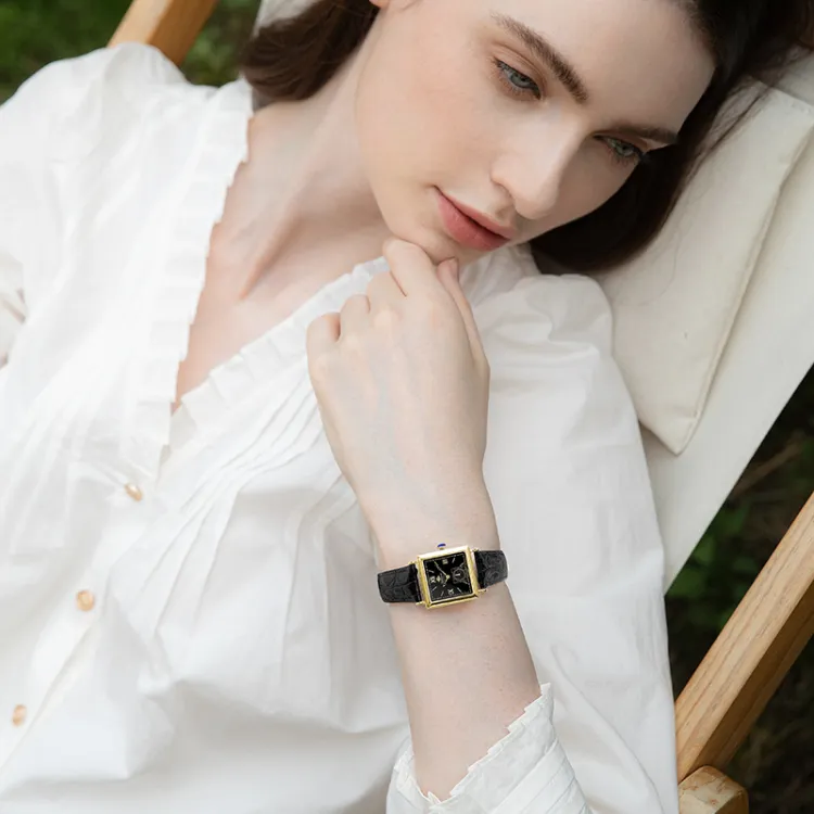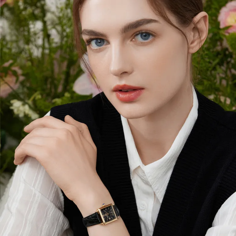 Черный циферблат [Коробка + Сумка для покупок + Шелковый шарф]