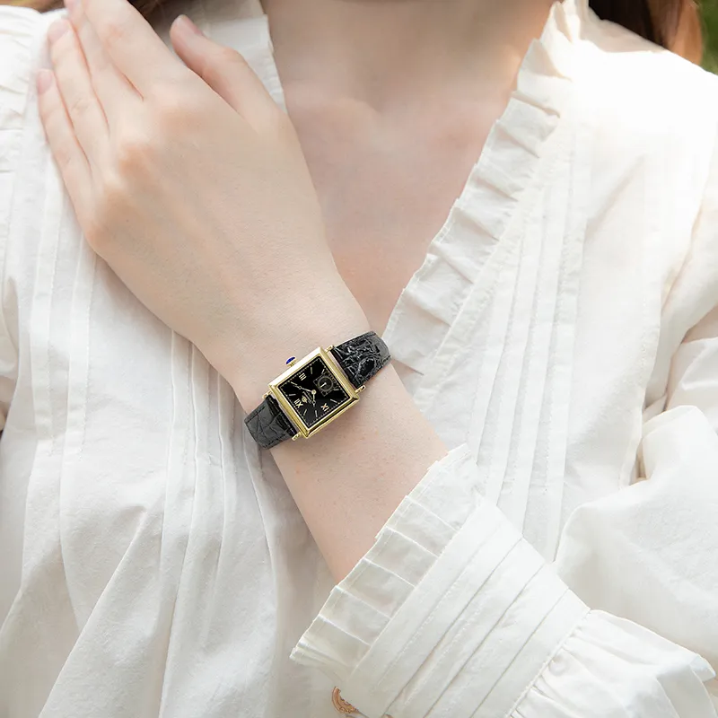 Rosemont Кварцевый механизм Женские часы Швейцарские Наручные часы 23 Черный циферблат Корпус из нержавеющей стали