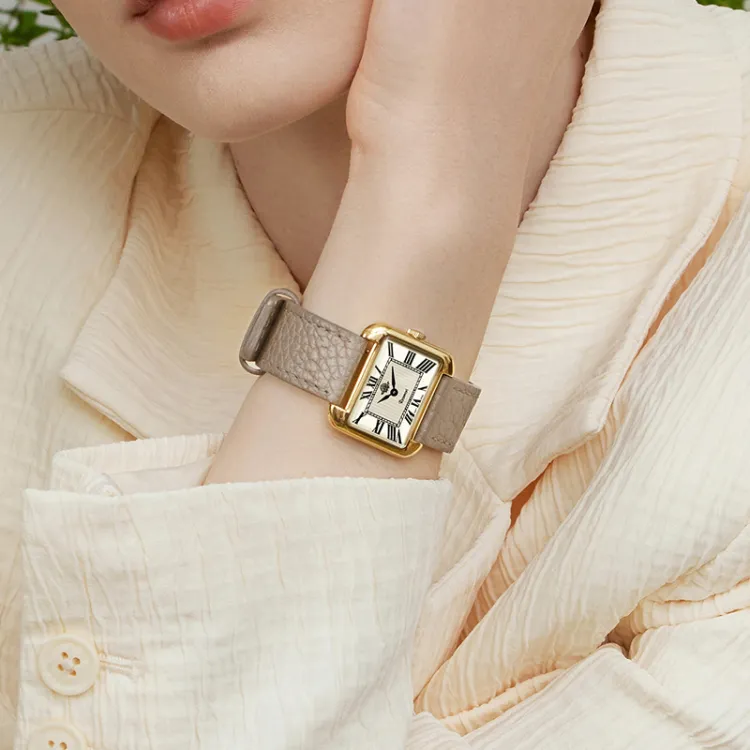 Золотой циферблат, ремешок из слоновой кости серого цвета