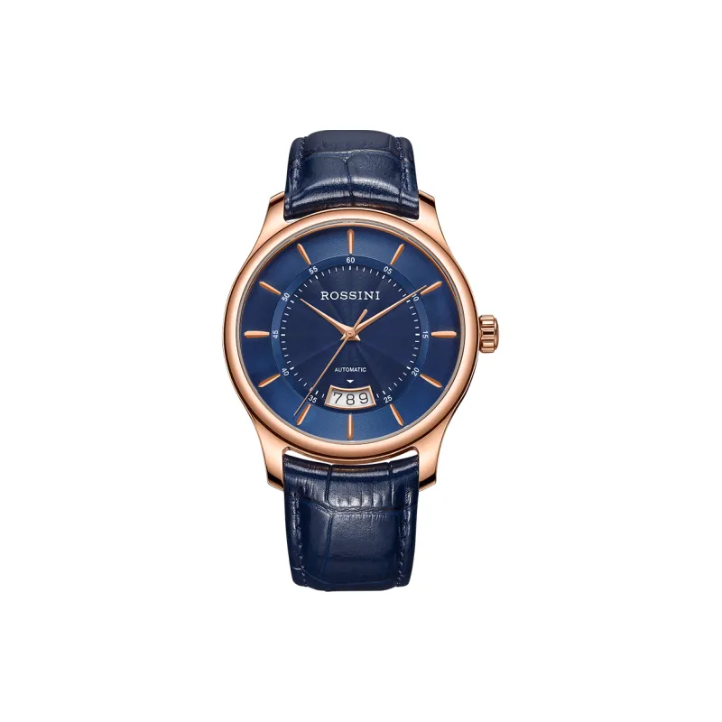 ROSSINI Механический механизм кожаный ремешок часы для мужчин синий циферблат
