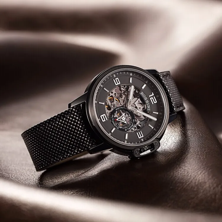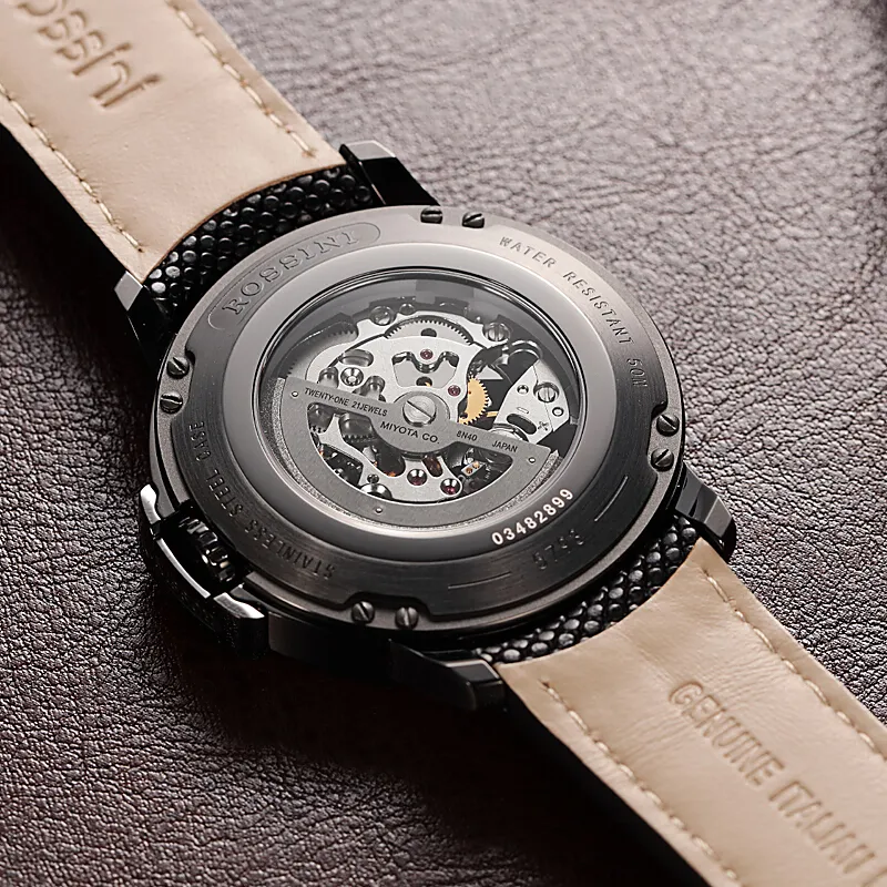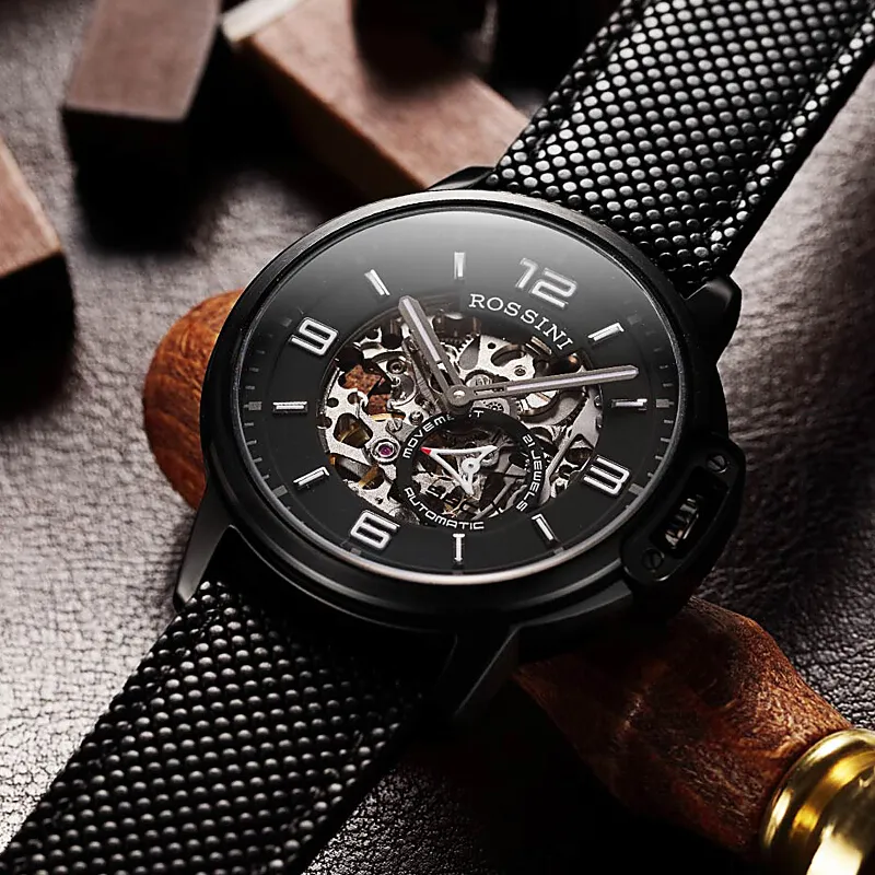ROSSINI Medallion Collection Автоматический Механический Механизм Часы из Натуральной Кожи Ремешок Мужские Часы