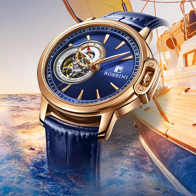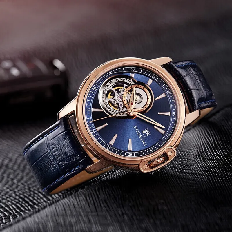 ROSSINI Medallion Collection Автоматический Механический Механизм Часы из Натуральной Кожи Ремешок Мужские Часы
