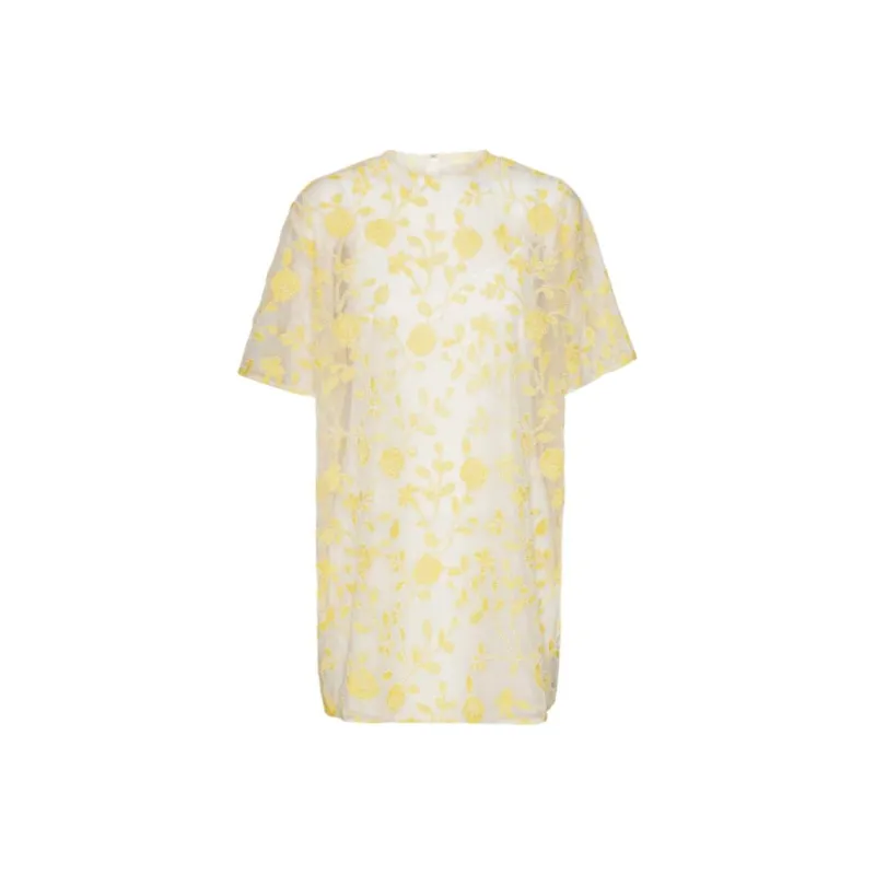 Rotate Короткий рукав Платье Женское Кремово-желтое