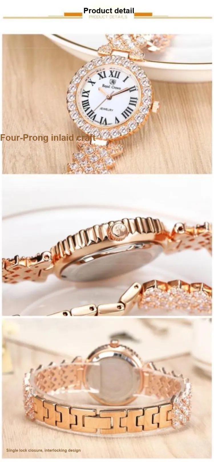 ROYAL CROWN RC Gilded Radiance Collection Кварцевый механизм Часы Женские Белый циферблат RC6305B BB